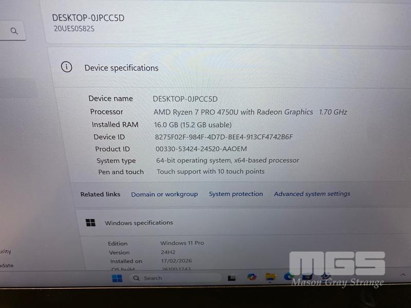 LAPTOP, LENOVO THINKPAD T14 Gen1, TYPE 20UE, AMD RYZEN 7 PRO 4750U @ 1.7GHz, 16GB DDR4 RAM, 512GB NVMe M.2 SSD, 14" TOUCHSCREEN (1920x1080), Wi-Fi, BLUETOOTH, WINDOWS 11 PRO INSTALLED & USB-C POWER SUPPLY