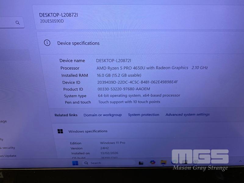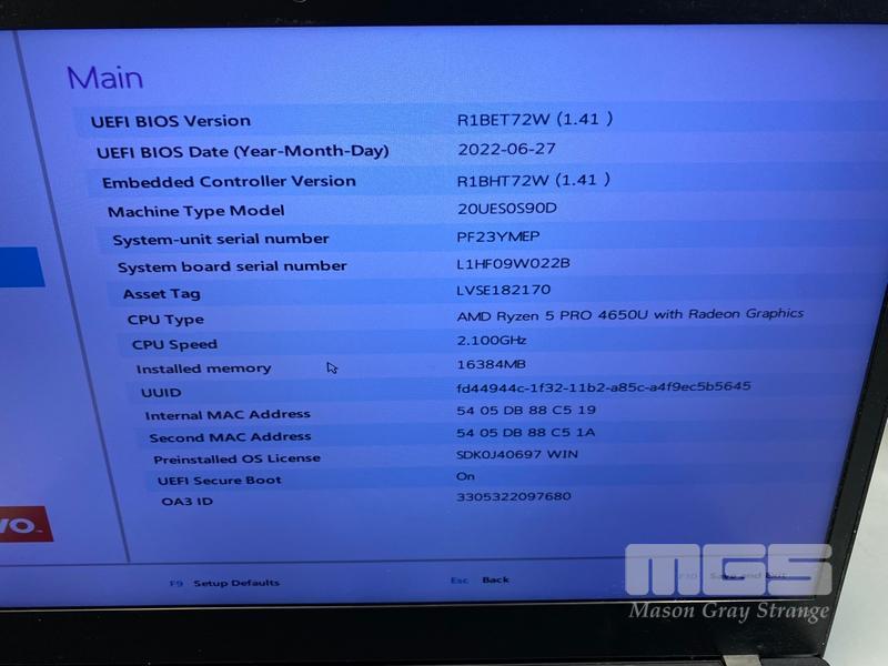 LAPTOP, LENOVO THINKPAD T14 Gen1, TYPE 20UE, AMD RYZEN 5 PRO 4650U @ 2.1GHz, 16GB DDR4 RAM, 512GB NVMe M.2 SSD, 14" TOUCHSCREEN (1920x1080), Wi-Fi, BLUETOOTH, WINDOWS 11 PRO INSTALLED (NO USB-C POWER SUPPLY) (NOTE: MINOR MARKS ON SCREEN)