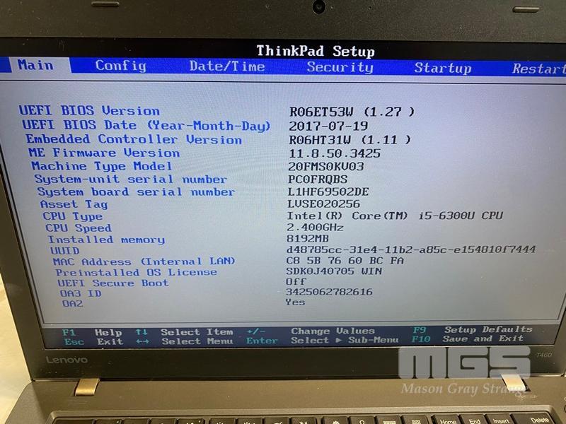 LAPTOP, LENOVO THINKPAD T460, TYPE 20FM, CORE i5 6300U (6TH GEN) @ 2.4GHz, 8GB DDR3 RAM, 275GB SSD, 14" WIDESCREEN (1366x768), INTEL HD VIDEO, Wi-Fi, BLUETOOTH, WINDOWS 10 PRO INSTALLED & POWER SUPPLY
