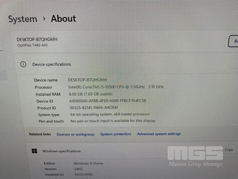 ALL-IN-ONE PC, DELL OPTIPLEX 7480, CORE i5 10500 (10TH GEN) @ 3.1GHz, 8GB DDR4 RAM, 512GB NVMe M.2 SSD, INBUILT 23.8" FHD WIDESCREEN (1920x1080), INTEL HD VIDEO, WEBCAM, 5 x USB, 1 x USB-C, Wi-Fi, BLUETOOTH, WINDOWS 11 HOME INSTALLED, KEYBOARD & MOUSE