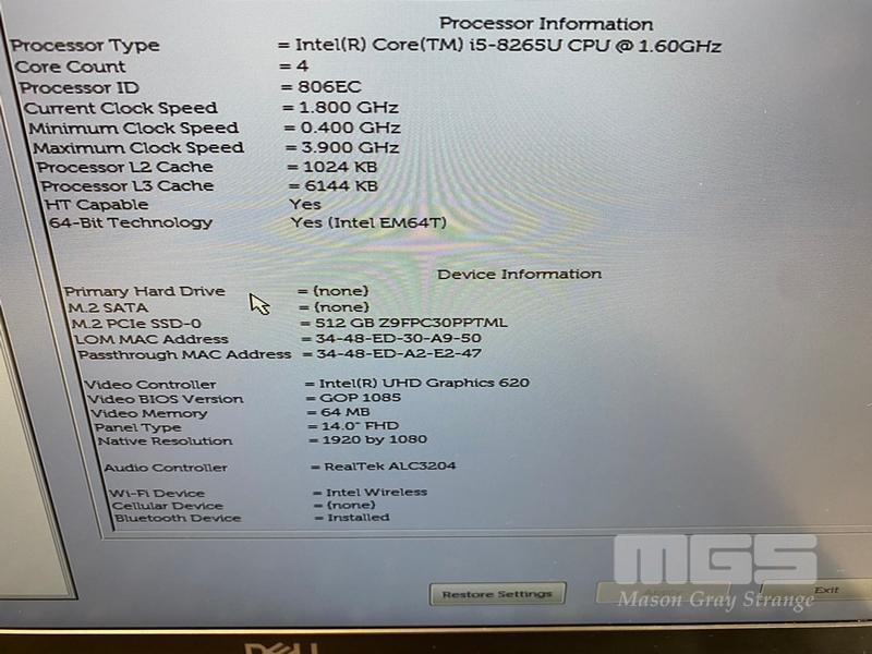 LAPTOP, DELL LATITUDE 5400, CORE i5 8265U (8TH GEN) @ 1.6GHz, 8GB DDR4 RAM, 512GB NVMe M.2 SSD, 14" WIDESCREEN (1920x1080), INTEL UHD GRAPHICS 620, Wi-Fi, BLUETOOTH, WINDOWS 11 HOME INSTALLED & POWER SUPPLY