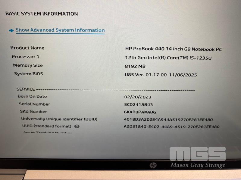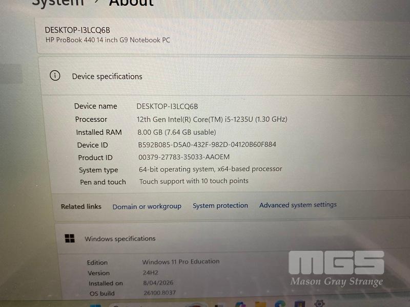 LAPTOP, HP PROBOOK 440 G9, CORE i5 1235U (12TH GEN) @ 1.3GHz, 8GB DDR4 RAM, 256GB NVMe M.2 SSD, 14" TOUCHSCREEN (1920x1080), INTEL UHD GRAPHICS, Wi-Fi, BLUETOOTH, WINDOWS 11 PRO EDUCATION INSTALLED & POWER SUPPLY (NOTE: MINOR MARKS ON SCREEN)