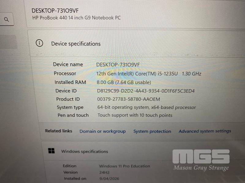 LAPTOP, HP PROBOOK 440 G9, CORE i5 1235U (12TH GEN) @ 1.3GHz, 8GB DDR4 RAM, 256GB NVMe M.2 SSD, 14" TOUCHSCREEN (1920x1080), INTEL UHD GRAPHICS, Wi-Fi, BLUETOOTH, WINDOWS 11 PRO EDUCATION INSTALLED & POWER SUPPLY