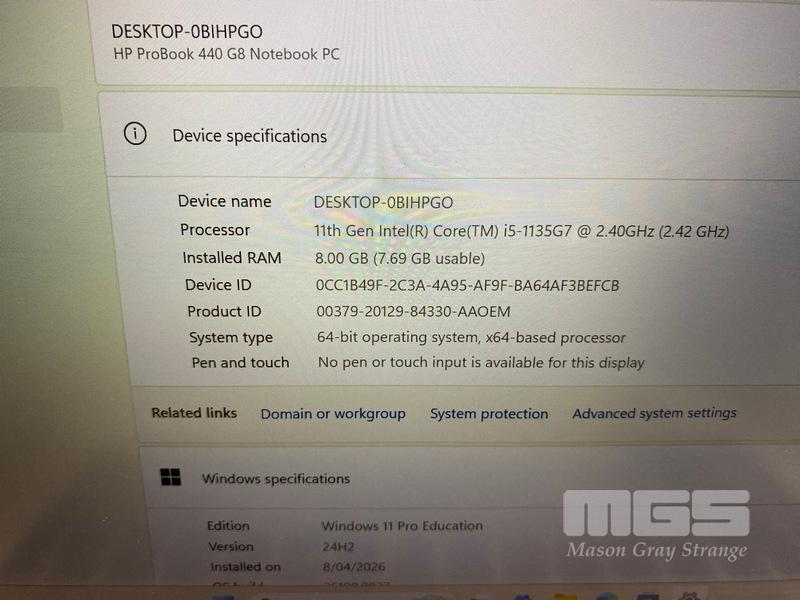 LAPTOP, HP PROBOOK 440 G8, CORE i5 1135G7 (11TH GEN) @ 2.4GHz, 8GB DDR4 RAM, 256GB NVMe M.2 SSD, 14" TOUCHSCREEN (1920x1080), INTEL UHD GRAPHICS, Wi-Fi, BLUETOOTH, WINDOWS 11 PRO EDUCATION INSTALLED & POWER SUPPLY