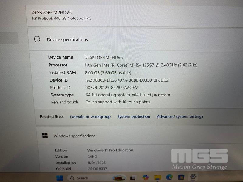 LAPTOP, HP PROBOOK 440 G8, CORE i5 1135G7 (11TH GEN) @ 2.4GHz, 8GB DDR4 RAM, 256GB NVMe M.2 SSD, 14" TOUCHSCREEN (1920x1080), INTEL UHD GRAPHICS, Wi-Fi, BLUETOOTH, WINDOWS 11 PRO EDUCATION INSTALLED & POWER SUPPLY