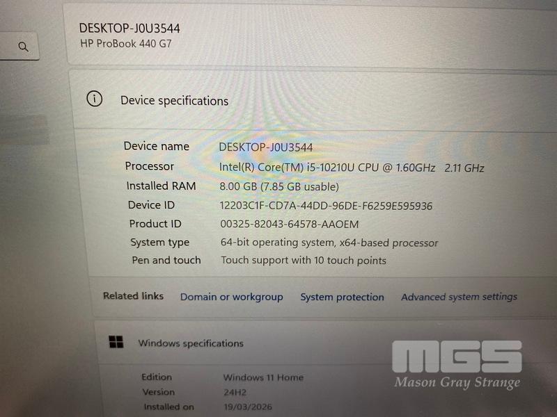 LAPTOP, HP PROBOOK 440 G7, CORE i5 10210U (10TH GEN) @ 1.6GHz, 8GB DDR4 RAM, 512GB NVMe M.2 SSD, 14" TOUCHSCREEN (1920x1080), INTEL UHD GRAPHICS, Wi-Fi, BLUETOOTH, WINDOWS 11 HOME INSTALLED & POWER SUPPLY