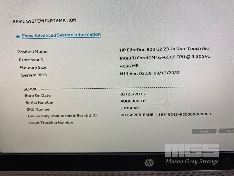 ALL-IN-ONE PC, HP ELITEONE 800 G2, CORE i5 6500 (6TH GEN) @ 3.2GHz, 4GB DDR4 RAM, 128GB SSD, DVD-RW, INBUILT 23" WIDESCREEN (1920x1080), INTEL HD GRAPHICS, Wi-Fi, BLUETOOTH, WINDOWS 10 HOME INSTALLED (NO PRODUCT KEY) (NO KEYBOARD, NO MOUSE)