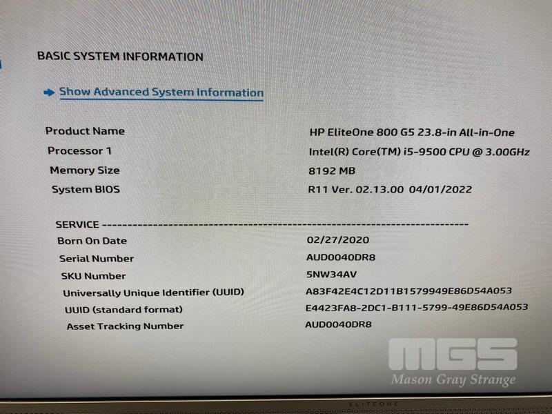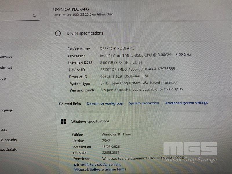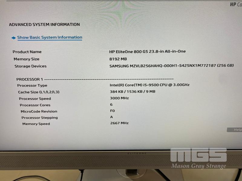 ALL-IN-ONE PC, HP ELITEONE 800 G5, CORE i5 9500 (9TH GEN) @ 3GHz, 8GB DDR4 RAM, 256GB NVMe M.2 SSD, INBUILT 23.8" WIDESCREEN (1920x1080), INTEL UHD GRAPHICS, Wi-Fi, BLUETOOTH, WINDOWS 11 HOME INSTALLED (NO KEYBOARD, NO MOUSE)