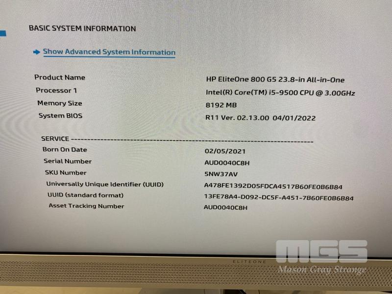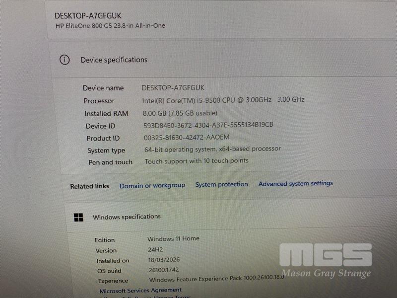 ALL-IN-ONE PC, HP ELITEONE 800 G5, CORE i5 9500 (9TH GEN) @ 3GHz, 8GB DDR4 RAM, 512GB NVMe M.2 SSD, DVD-RW, INBUILT 23.8" TOUCHSCREEN (1920x1080), INTEL UHD GRAPHICS, Wi-Fi, BLUETOOTH, WINDOWS 11 HOME INSTALLED (NO KEYBOARD, NO MOUSE)
