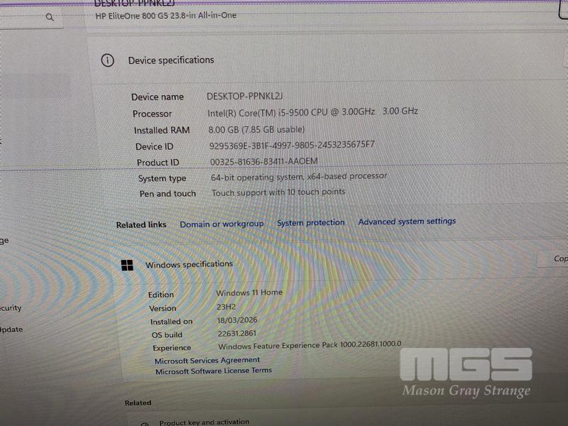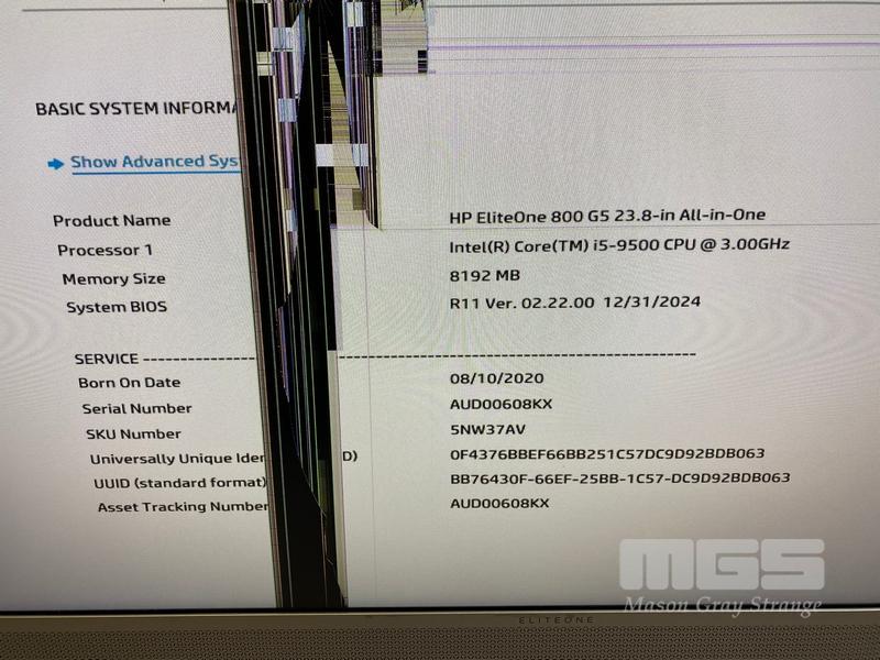 ALL-IN-ONE PC, HP ELITEONE 800 G5, CORE i5 9500 (9TH GEN) @ 3GHz, 8GB DDR4 RAM, 512GB NVMe M.2 SSD, DVD-RW, INBUILT 23.8" TOUCHSCREEN (1920x1080), INTEL UHD GRAPHICS, Wi-Fi, BLUETOOTH, WINDOWS 11 HOME INSTALLED (NO KEYBOARD, NO MOUSE) (NOTE: DAMAGED SCREEN)