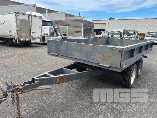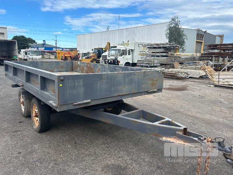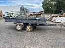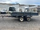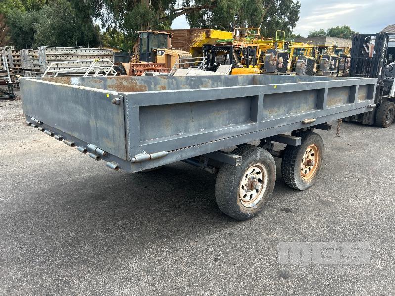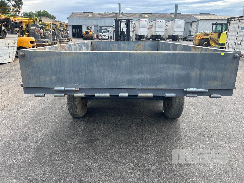 TANDEM AXLE TRAILER, 13x6.6ft HEAVY DUTY CONSTRUCTION NO REGO NO COMPLIANCE PLATE SPRING SUSPENSION BALL HITCH INTERNAL SIZE: 4000 x 2040mm TRYRE SIZE: 205 R 16 STEEL DECK, HINGED SIDE, FRONT & REAR GATES
