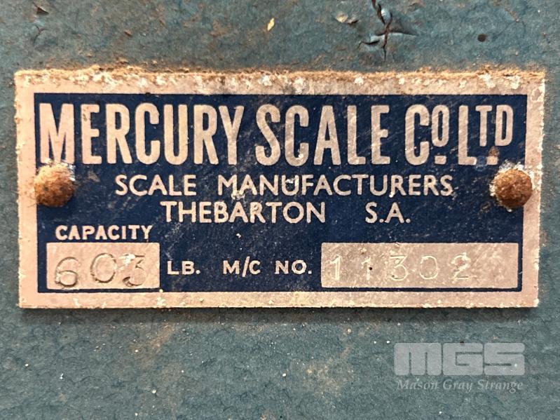 VINTAGE WOOL SCALES, MERCURY SCALE CO BALANCING SCALES MOD: 11302 CAPACITY: 603LB PLATFORM SIZE: 600 x 600mm