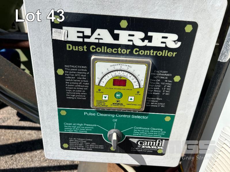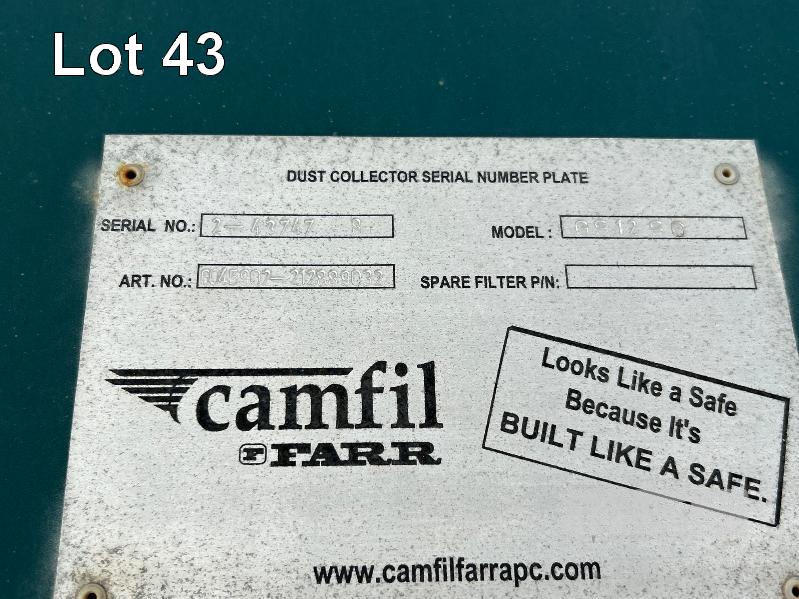 INDUSTRIAL DUST EXTRACTION & COLLECTION UNIT FARR CAMFIL MODEL : GS12SQ S/N : 2-437478 FITTED FARR DUST COLLECTOR CONTROLLER HRS SHOWING 58,903 415 V, SKID MOUNTED WITH FORK POCKETS