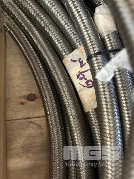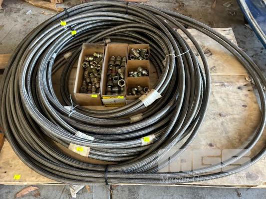 PTFE TEFLONE HOSE, STAINLESS STEEL BRAIDED MEDIUM DIA. 15-20mm ASSORTED SIZES AND LENGHT WITH FITTING TO SUIT APPROX 50 MTRS (1 x PALLET)