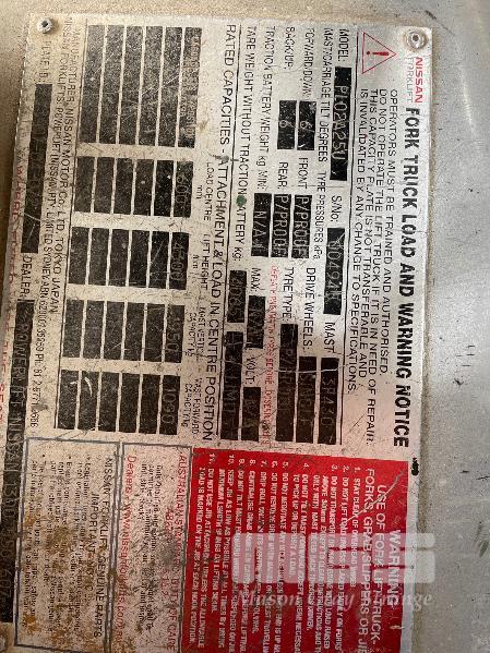 NISSAN FORKLIFT MODEL PL02A-25U, SIDE SHIFT, BLADE POSITION, 3 STAGE CONTAINER MAST 4300MM HEIGHT