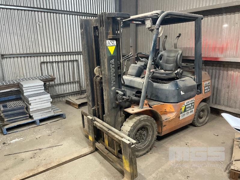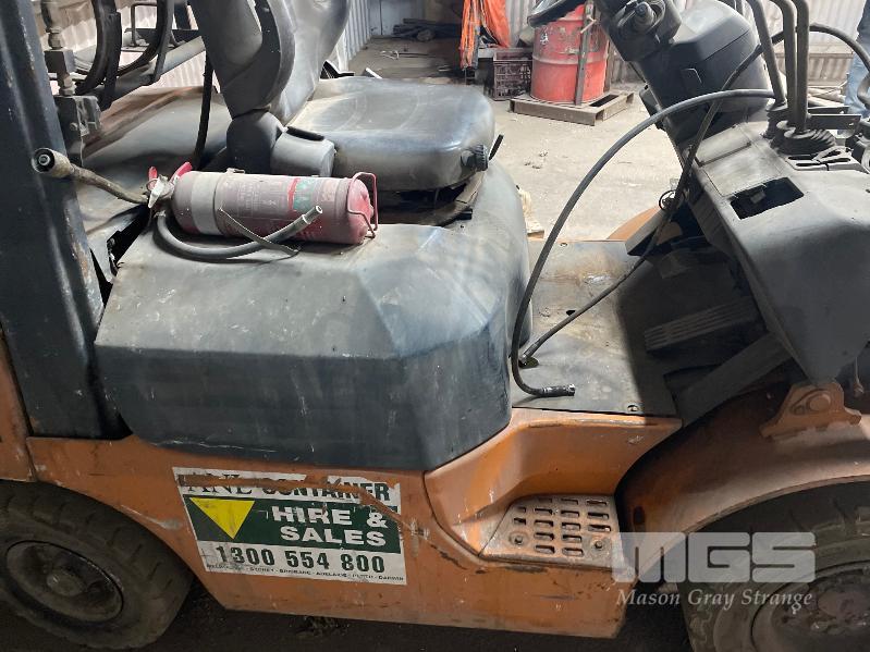 TOYOTA FORKLIFT FG SERIES, 3 STAGE CONTAINER MAST, LPG, NEEDS SIDE SHIFT REPAIR.