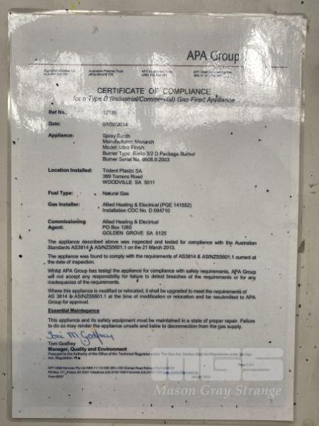 MONARCH ULTRA FINISH BOOTH, DOWN DRAFT, GAS HEATED
