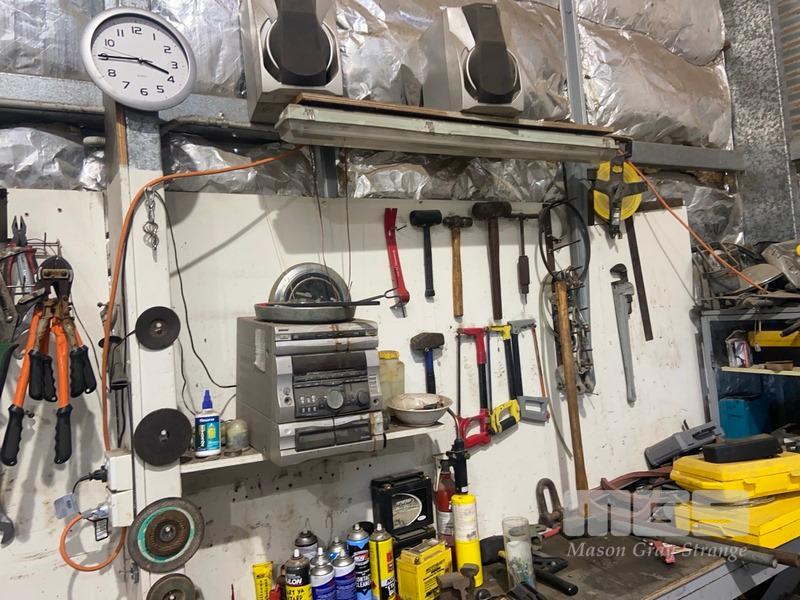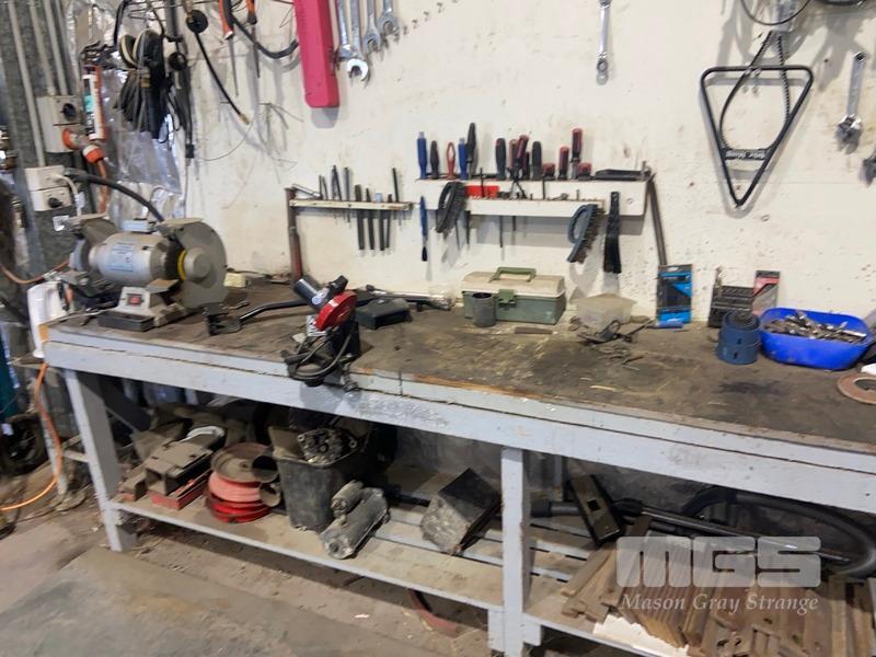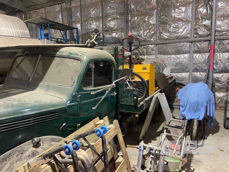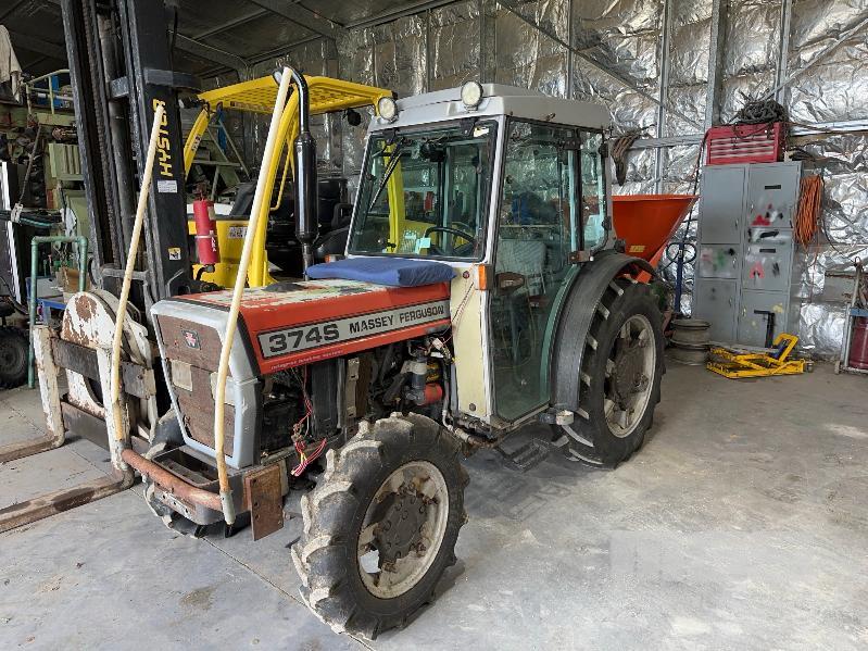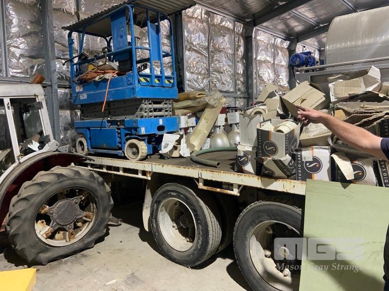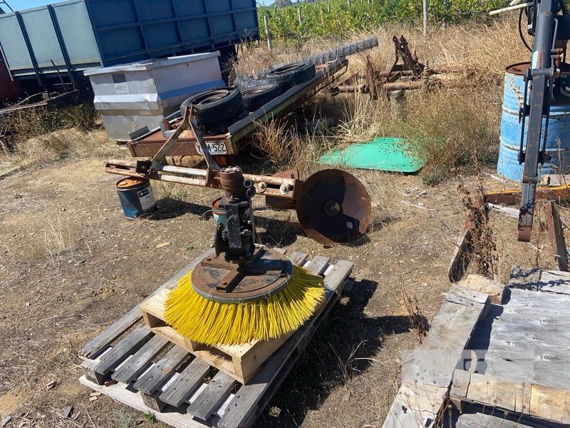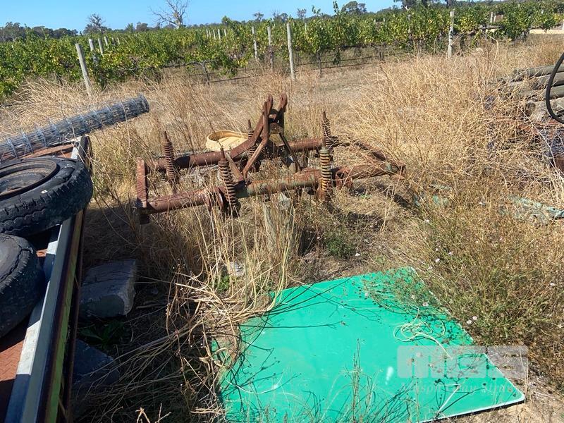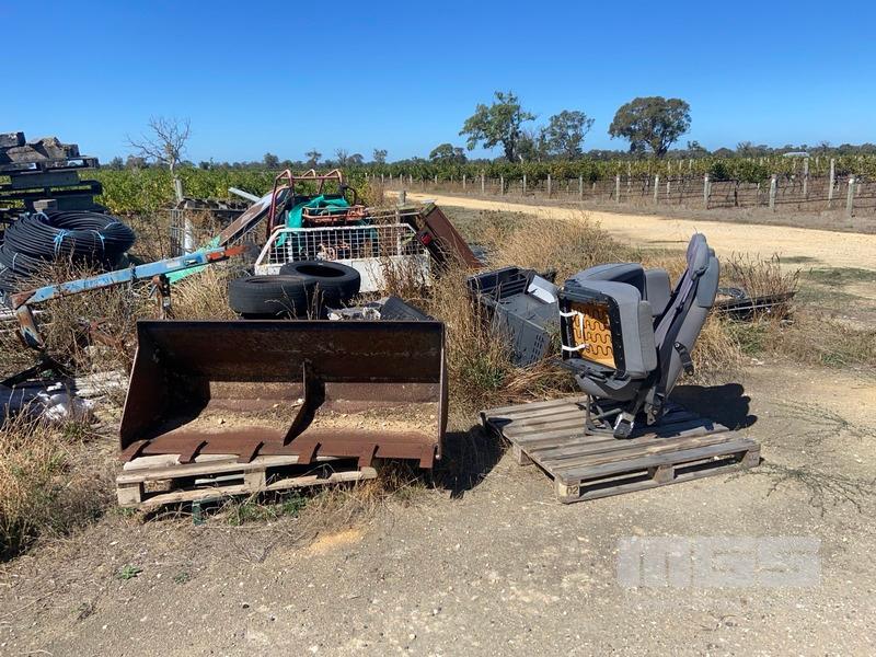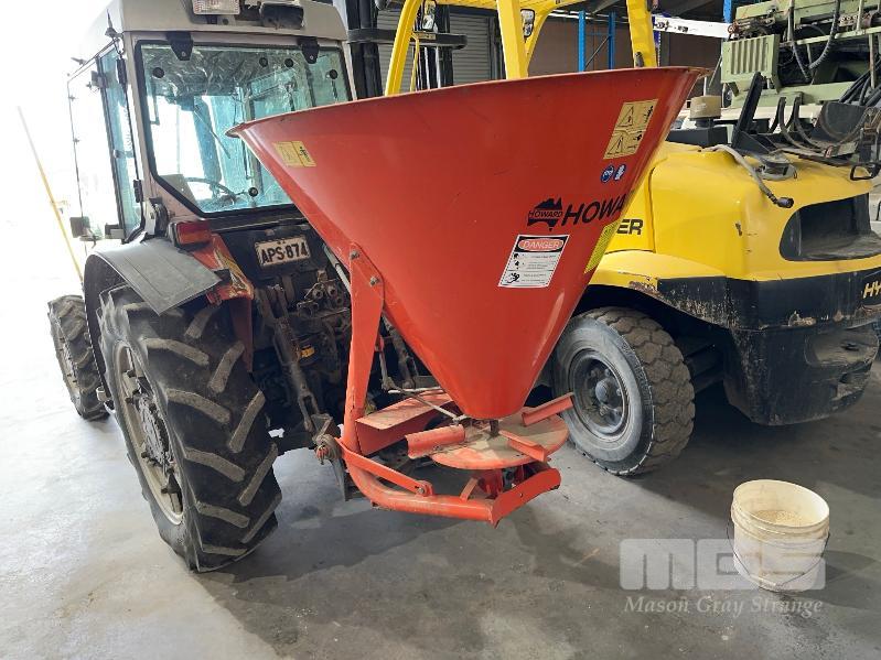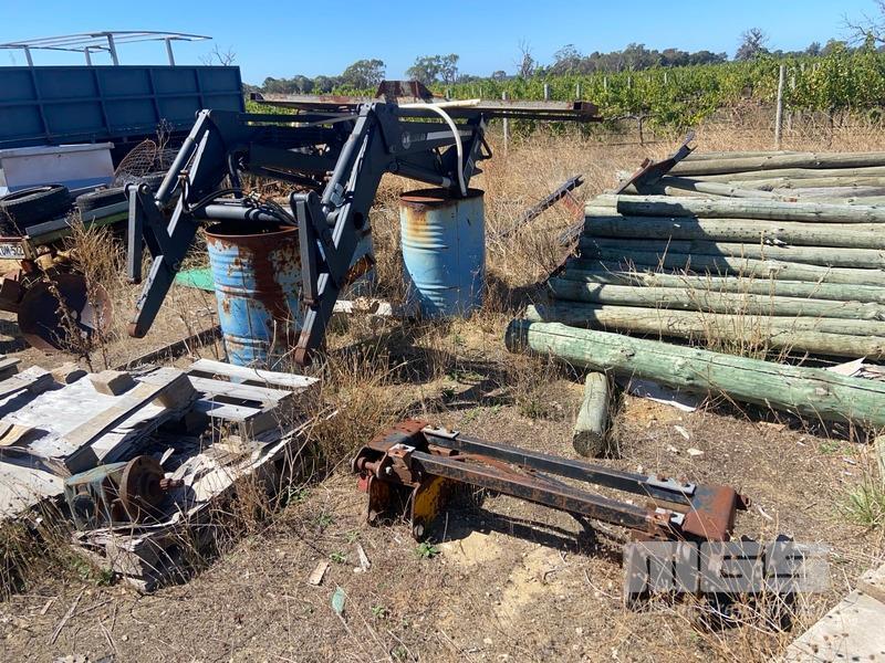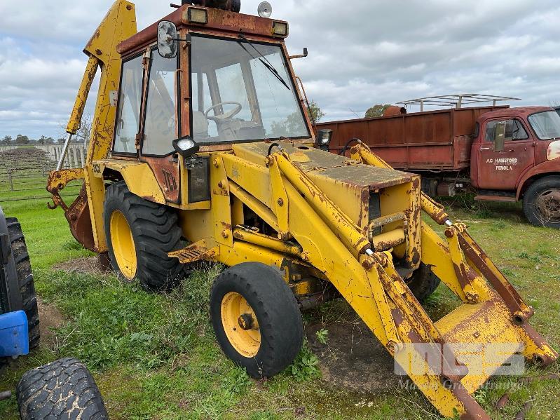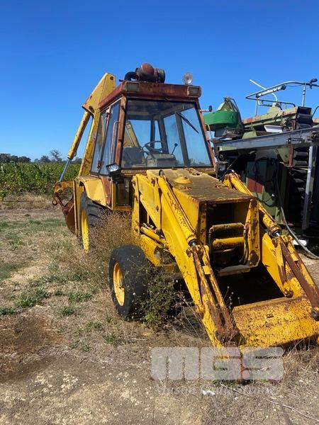 JCB BACKHOE, MASSEY TRACTOR AND SPREADER, DRAWN HARVESTER