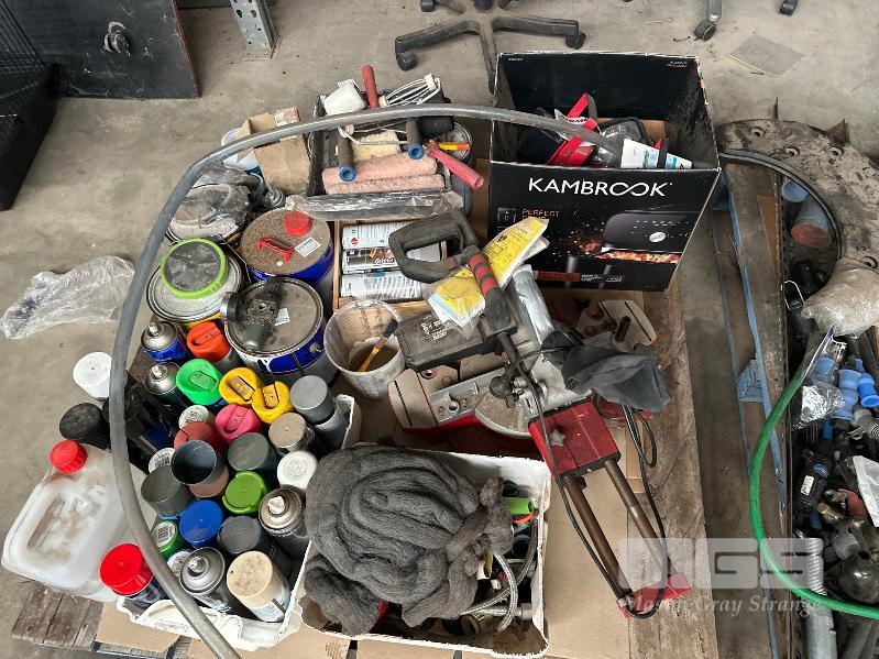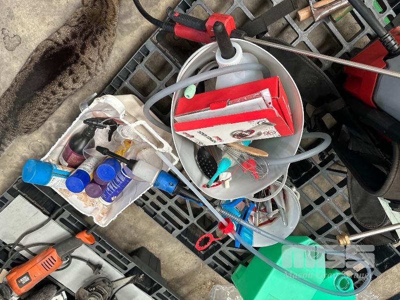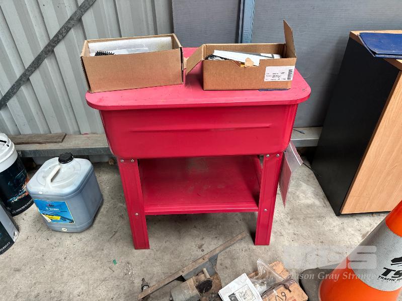 PARTS WASHER, SWEEPER, TOOLS AND TRUCK WARNING SIGNS