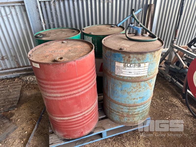 OILS, LUBE DRUMS, GREASE PACK ETC