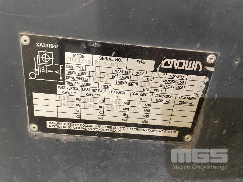 CROWN CDS70S FORKLIFT RATED 7000KG, 5200KG VERTICAL LIFT