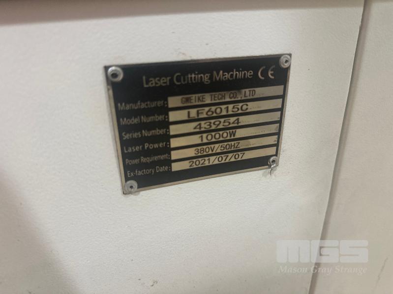2021 GWEIKE TECH LASER CUTTING TABLE MODEL LF6015C 1000 WATT, 6000MM X 1500MM TABLE WITH COOLER AND CONTROLS.