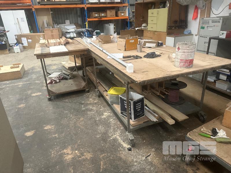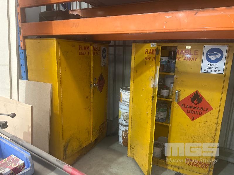 FLAMMABLE CABINETS, AUTO JIG CAST BENCHES, WORK TABLES, TROLLYS ETC