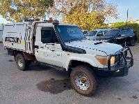2012 TOYOTA LANDCRUISER, SINGLE CAB SERVICE BODY 4x4 4.5 LITRE V8 TURBO DIESEL, 5 SPEED MANUAL ODO: 305,665 kms SHOWING